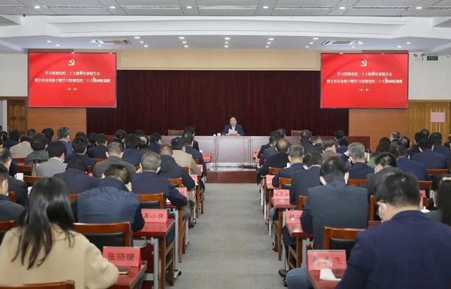 11月16日,省委宣讲团成员、市委宣讲团团长、市委书记陈金虎在市委党校学习贯彻党的二十大精神宣讲报告会暨全市县处级干部学习贯彻党的二十大精神第1期轮训班作宣讲报告时强调,全市上下要更加紧密团结在以