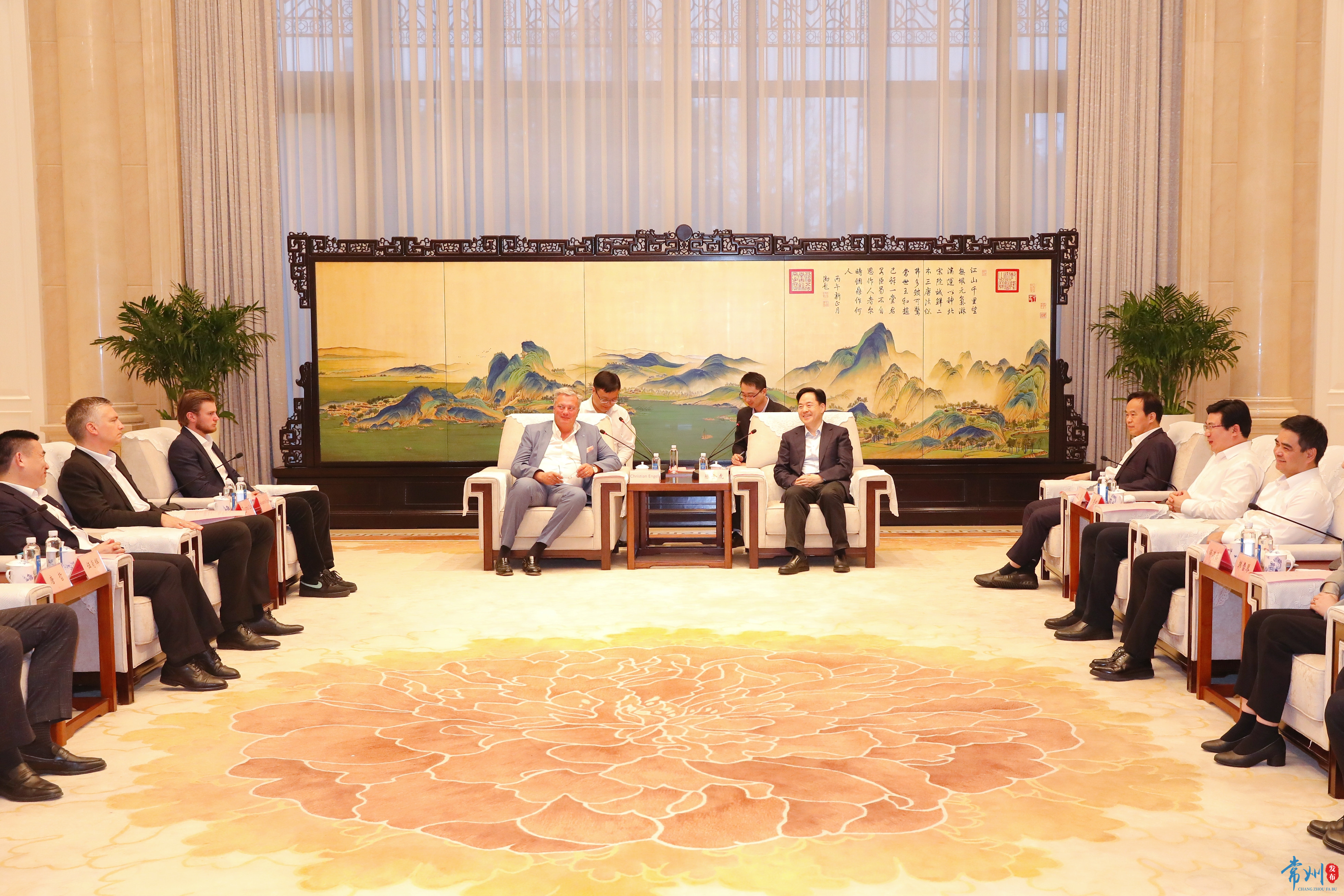 10月9日,市委书记陈金虎会见了德国BHS总裁克里斯蒂安·恩格尔一行,双方就进一步深化合作进行交流。 陈金虎代表市委、市政府对克里斯蒂安·恩格尔一行来访表示欢迎,并简要介绍常州经济社会发展情况。